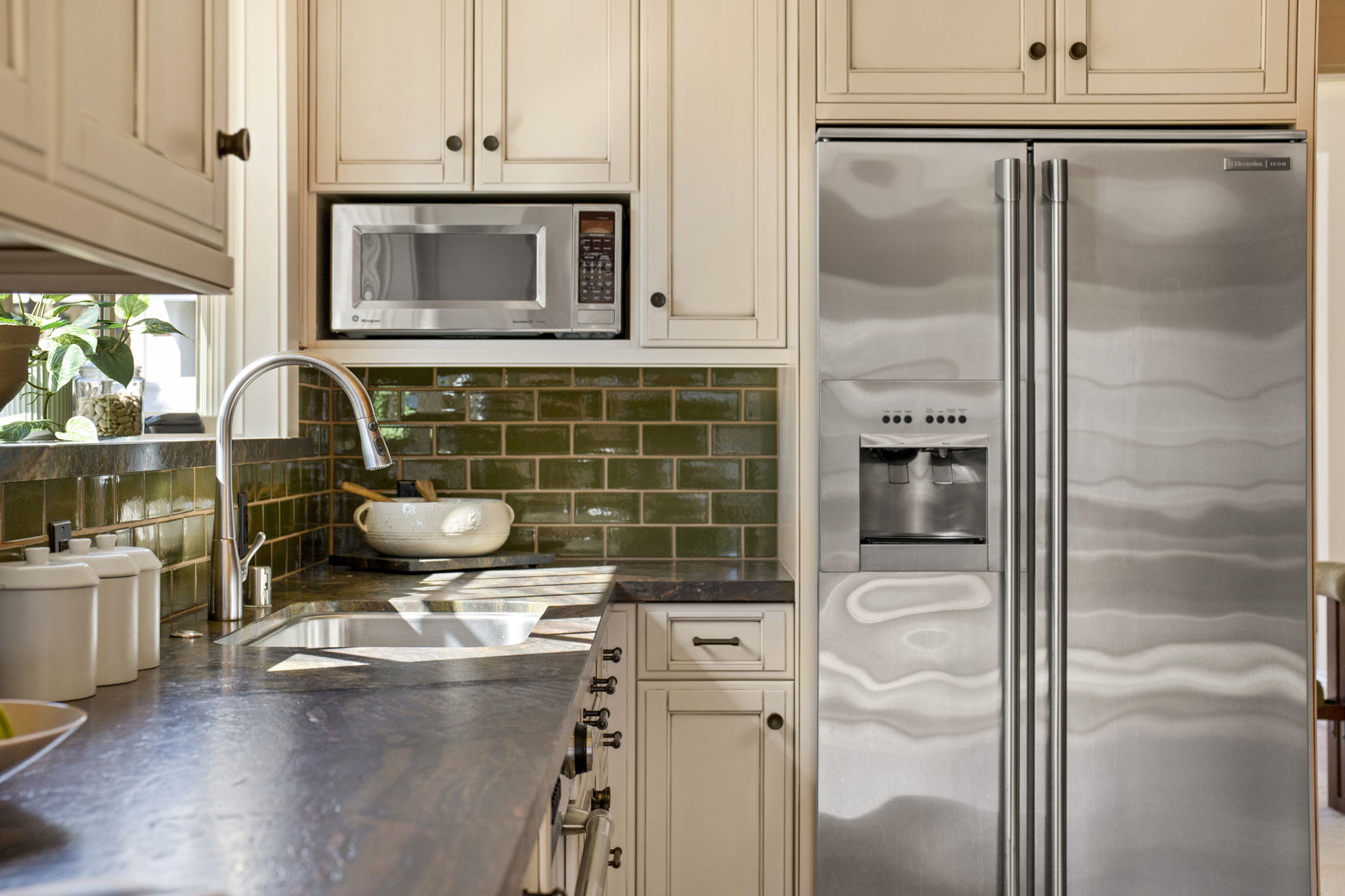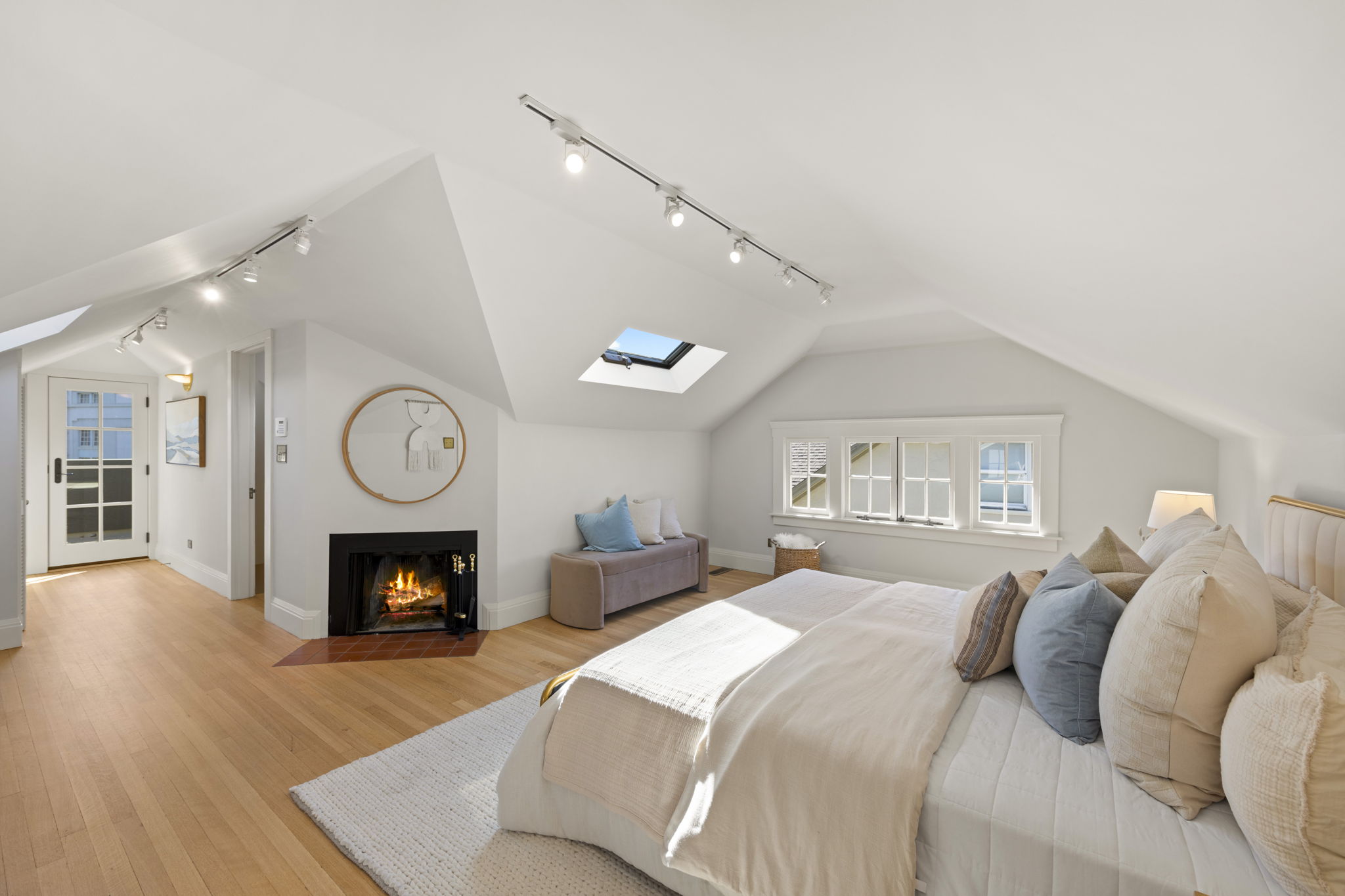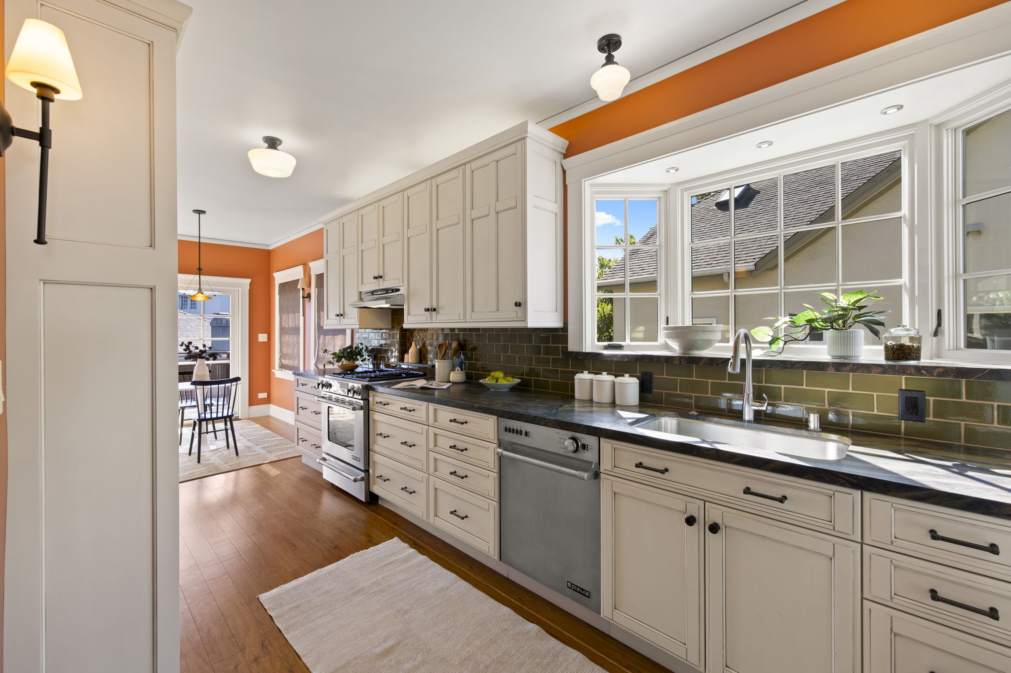 A lovely Crocker Highlands Craftsman bungalow featuring 64 panes of glass across its frontage and wonderful curb appeal. Inside, a gas fireplace anchors the living room beneath elegant tray ceilings, adjacent to a well-proportioned dining room. The kitchen renovation by Mueller Nicholls is a chefโs dream featuring weathered stone countertops, subway tile backsplash, custom cabinetry, and a breakfast nook with slider doors to the rear view deck. Three bedrooms and a renovated bath with artisan tile complete the main level. Upstairs, the primary suite offers a decorative fireplace, full bath with skylight and ombre tile, and a private balcony with neighborhood views. The lower level includes ample storage, a workshop, and direct garage access.