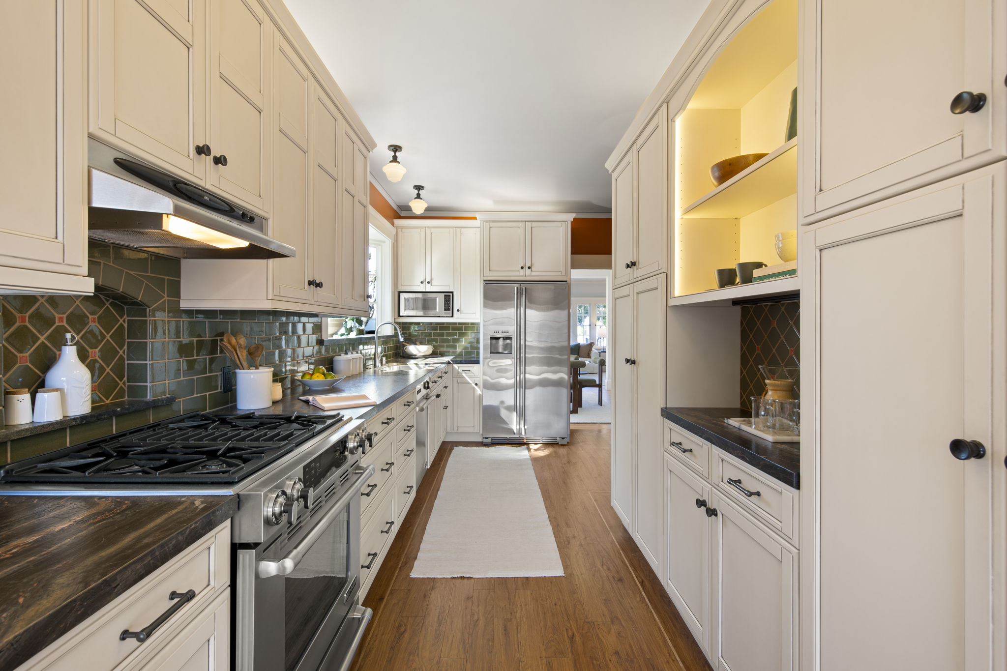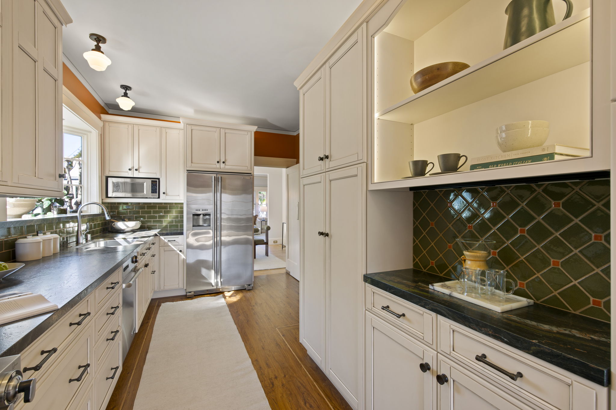 The rear gardens feature grassy areas for play, mature landscaping, and a water feature as centerpiece. Meticulously maintained throughout. Minutes from award-winning Crocker Highlands Elementary, Lakeshore Avenue shops and restaurants, Lake Merritt, the Saturday Farmers Market, and the Bay Bridge to San Francisco.