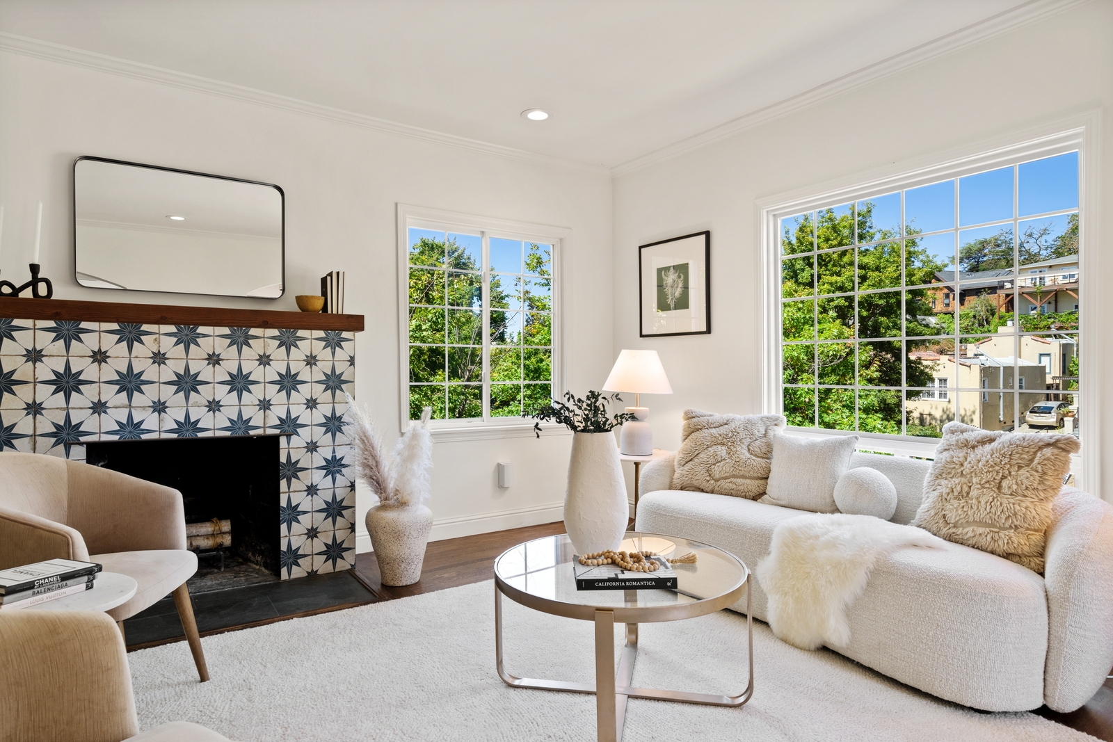Bright light, wood floors and a stunning tile fireplace surround at this Traditional in Crocker Highlands.